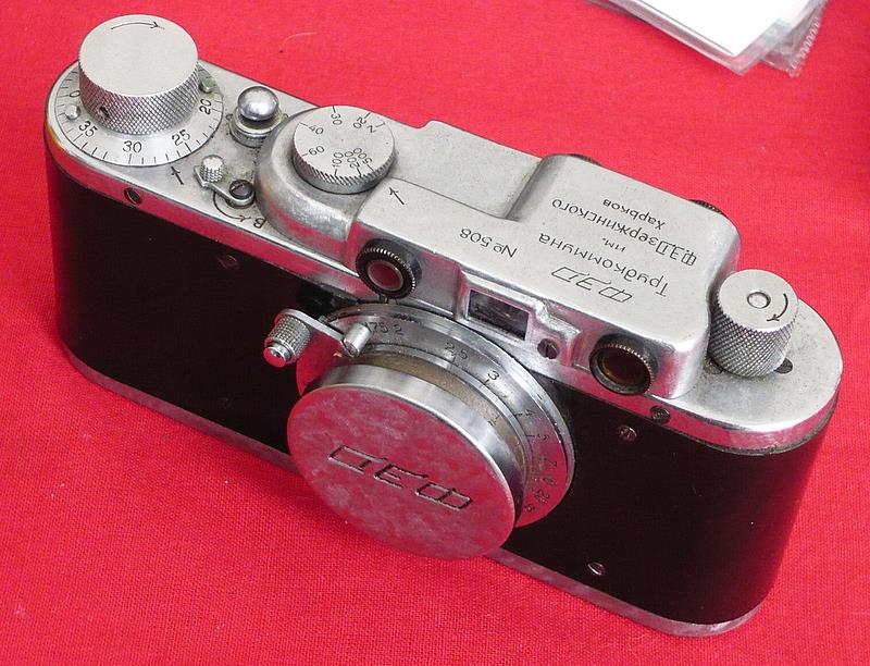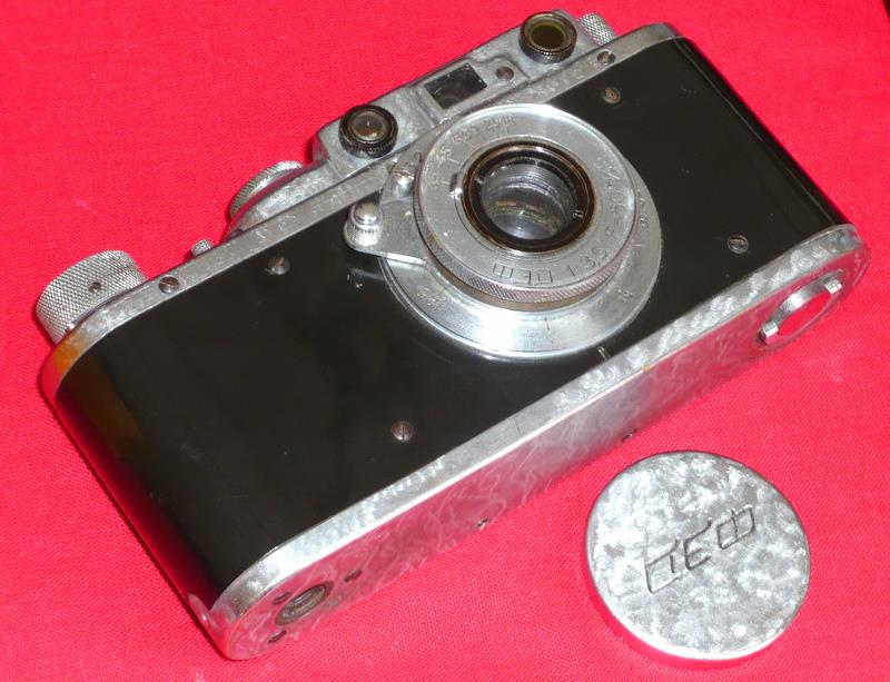 This is an early variation of FED 1a with smooth plastic covering instead of textured vulcanite. The example shown may have a non-original, replaced covering, as existing photos and examples in collections have a smooth black covering that is much less shiny, showing an almost matte surface (please see the black and white archival photo). Camera FED #508 is completely authentic! Personally, I held her in my hands!/A.Nikitin/